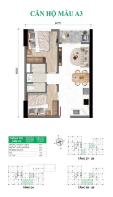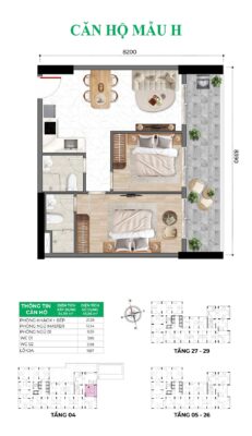 - Căn 2 phòng ngủ: 48m2 – 52m2 – 54m2 – 60m2 – 69m2